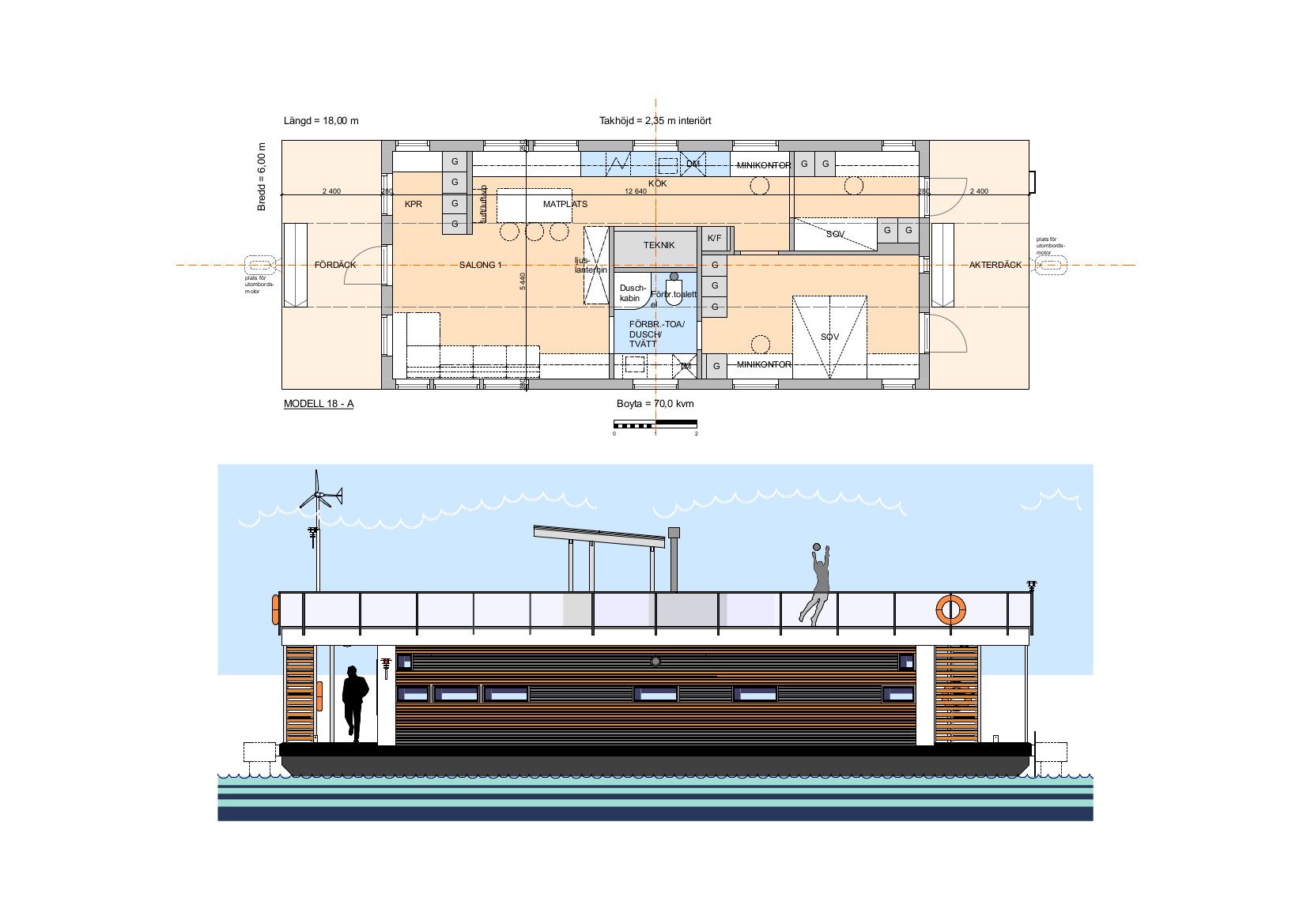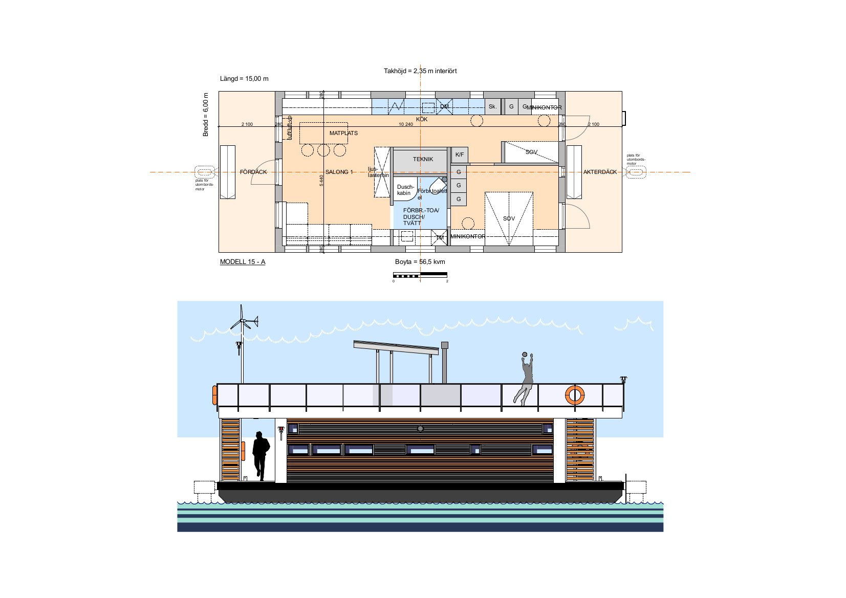Varje modell kan anpassas vad gäller planlösning, materialval och tekniska lösningar. Bredd, överbyggnad och soldäck väljs utifrån hur husbåten ska användas över tid.