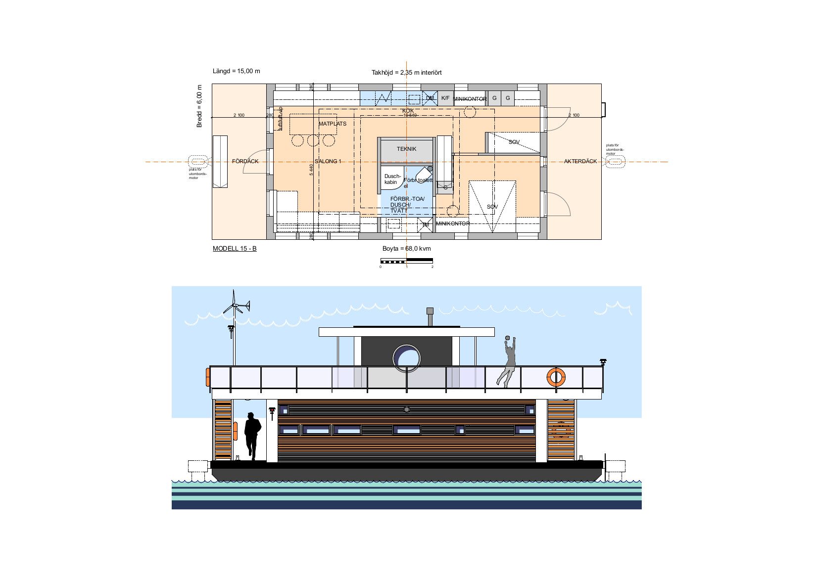 Valet av storlek påverkas av platsens förutsättningar och hur många som ska bo i husbåten.