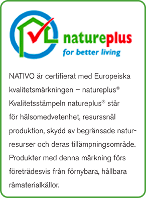Råvaran för NATIVO kommer från gallring av tallskog och från sågverk. Ingen konventionell formaldehyd eller PMDI bindemedel används i produktionen. En ständig kontroll av råvaror under produktionen samt tillsyn från tredje part, gör att NATIVO certifieras som utsläppsfri och icke hälsofarlig.